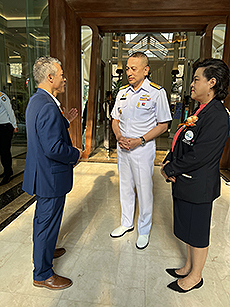 Stephen G. Dunbar (L) and team member, Dr. Nantarika Chansue (R), meet Admiral Suwin Jaengyodsuk, Deputy Commander of the Royal Thai Navy, who attended the Symposium's openng ceremonies. |