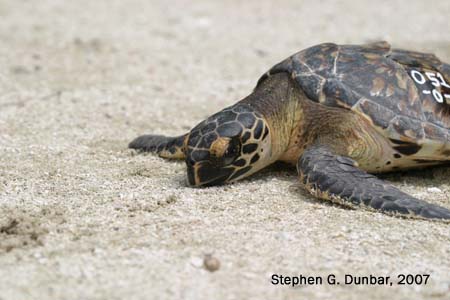 ID # 51-07 Name: "Sugarplumb" Species: Hawksbill Weight: 0.8 Kg CCLmin: 21.3 cm Measure Date: 6/27/07