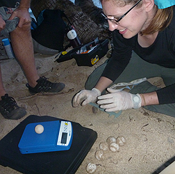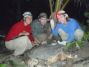 Two professors (center and right) who came to learn more about the ProTECTOR research, and are interested in assisting ProTECTOR with turtle genetic studies.