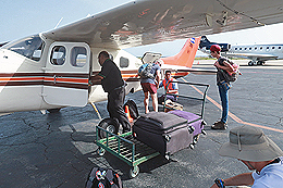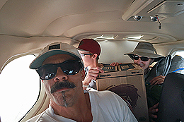 Steve, Emily, and Robert managed to squeeze themselves and the gear into the small plane. Guanaja bound! |
