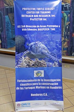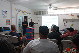 At the Bonacca Cay library, Steve gave a talk highlighting the importance of protecting the local sea turtles. |