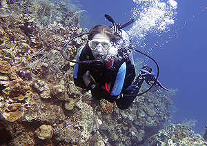 Ashley Morrow, a ProTECTOR Inc. intern, joins the group on an in-water survey. |