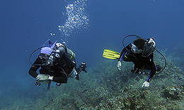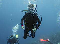 Splash Inn Dive Master, Anna Rumbelow, joins the team for an in-water turtle survey. |