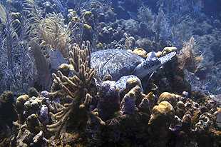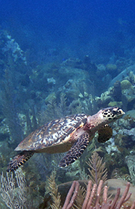 Hawksbill observed in the Sandy Bay West End Marine Reserve are classified as spongivores. |