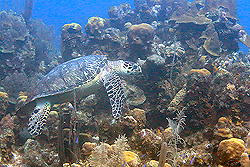 Several juvenile hawksbill sea turtles are found within the Sandy Bay West End Marine Reserve in Roatan, Honduras. |
