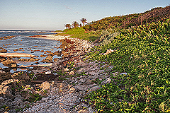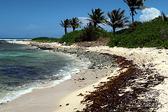 A more distant view of the small and heavily vegetated Pumpkin Hill Beach. |