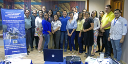 ProTECTOR Inc. volunteers enjoy a close up encounter with a recently capture hawksbill. |